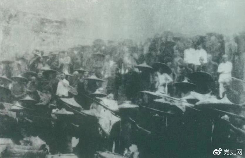 ▲1926年7月9日,國民革命軍開始北伐。兩天后,北伐軍的先頭部隊(duì)葉挺獨(dú)立團(tuán)攻占了長沙,然后向武漢進(jìn)攻。一路上,迅猛發(fā)展的農(nóng)民運(yùn)動(dòng)有力地配合了北伐戰(zhàn)爭。在湖南、江西、湖北,農(nóng)民運(yùn)動(dòng)越來越引人注目。這是支援北伐戰(zhàn)爭的農(nóng)民自衛(wèi)軍。