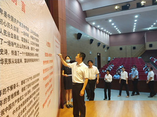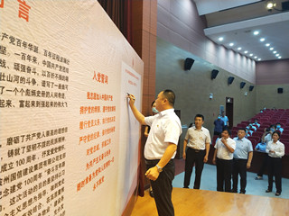 與會(huì)黨員在簽名墻上簽名